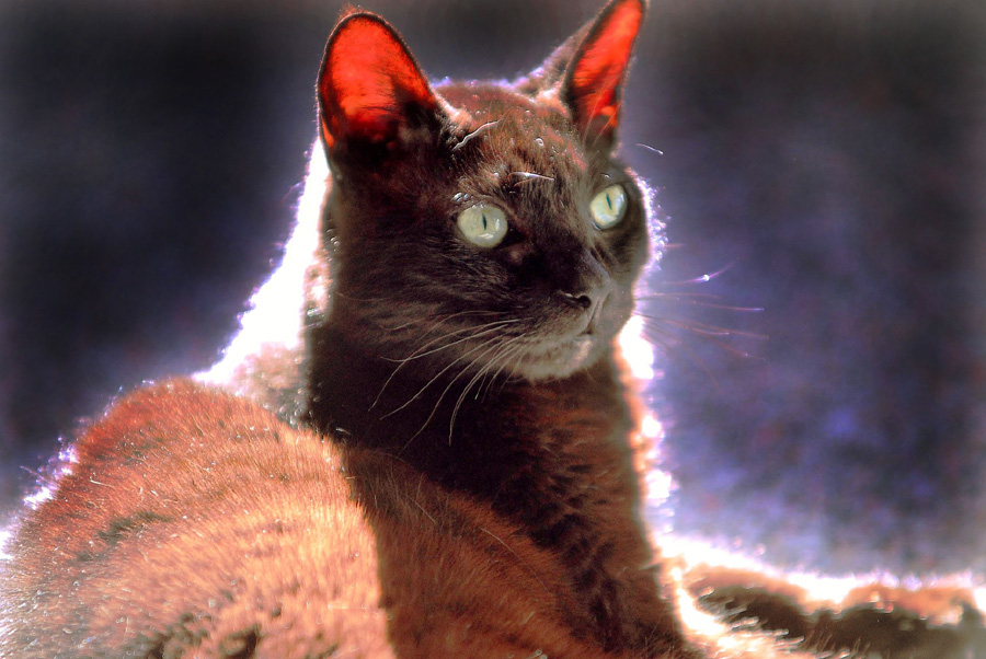 Many people see Missy as a black cat, though she is a "Havana Brown", a breed of very dark brown cats. She of course is in reality a feral mix, but her dominate look is that of a Havanah Brown. This if course created problems for me as a photographer. She was very difficult to photograph.